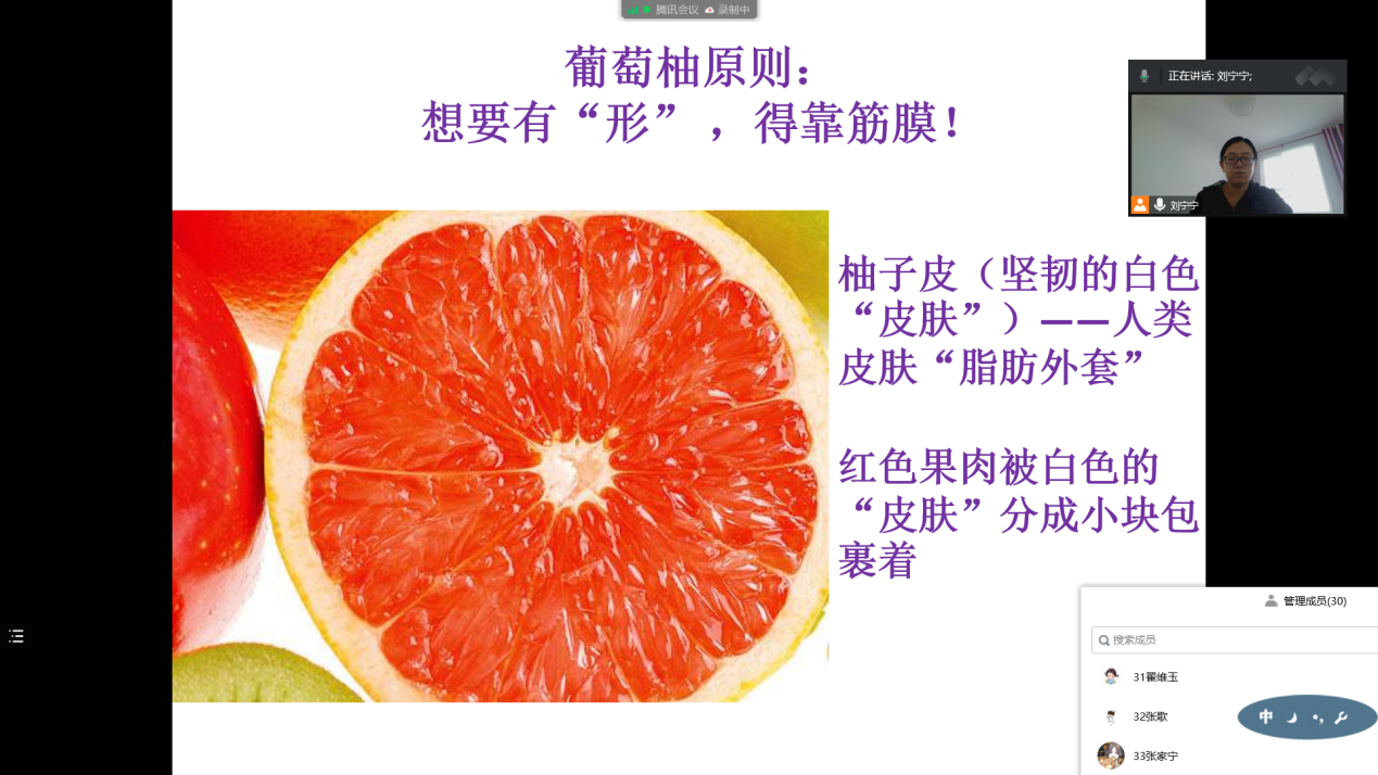 12月15日14:30,体育学院刘宁宁博士以腾讯会议的方式做了题为“筋膜健身与科学生活”的学术讲座。该讲座是我校“大同讲堂”的第六场学术讲座,由人文社科部和体育学院共同主办,体育学院副院长王海副教授主持,百余名师生在线聆听了讲座。