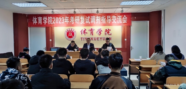 为帮助学院2023届考研毕业生进一步理清复试备战思路,从容应对即将到来的研究生复试,3月22日下午,体育学院组织召开了2023年考研复试调剂指导交流会。院长赵岷、副院长王海、学院骨干教师、专职政治辅导员为同学们进行考研复试的经验指导,2023届毕业生参加会议。会议由副院长王海主持。